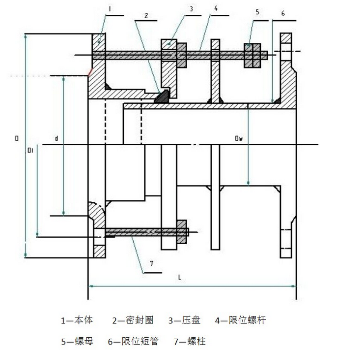 VSSJA-2(B2F)型雙法蘭限位伸縮接頭是在松套伸縮接頭原有性能的基礎(chǔ)上增設(shè)限位裝置,在大伸縮量處用雙螺母鎖定。管道在允許的伸縮量中可以自由伸縮,一旦超過其大伸縮量就起到限位,確保管道的安全運(yùn)行,特別適用于有振動(dòng)或有一定斜度及拐彎的管路中的連接。