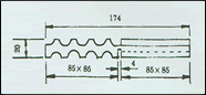 85 X 42.5 、85 X 85、131.5 X 85、174 X 85、220.5 X 85、263 X 85、174 X 174、263 X 174等,可以基本塊為單位。根據(jù)需要任意拼裝,每一基本塊使用的橡膠硬度又分為40°、60°、80°、三種規(guī)格,以適應(yīng)不同垂向設(shè)計負載。
